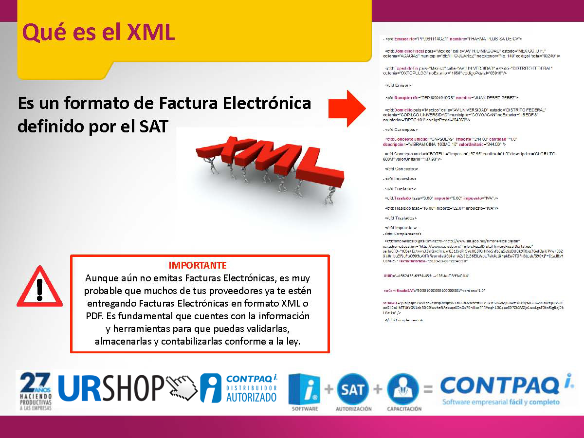 ¿Qué es el XML? Da click en la imagen para hacerla mas grande. Es un formato de factura electrónica definido por el SAT.